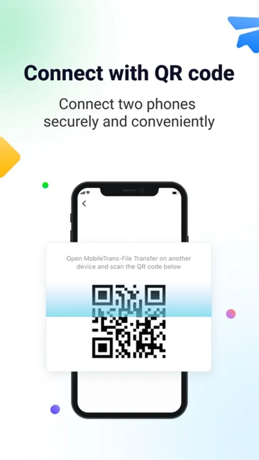 MobileTrans offers QR Code-based transfer, allowing you to connect two devices by simply scanning a QR code. It supports data transfer between different OS (iOS and Android) and various phone brands, such as transferring from Samsung to iOS or from iPhone to HUAWEI.