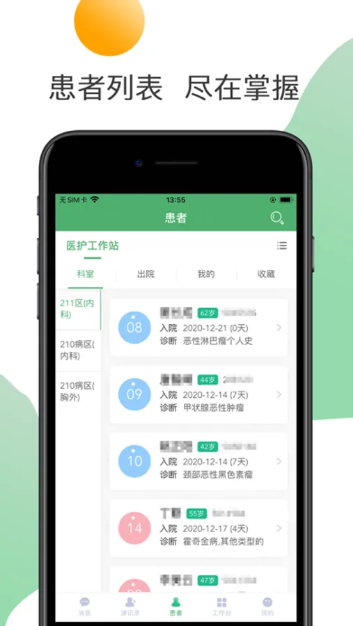 患者列表:给医生展示患者在医院的各项数据,以便医生能实时的监控患者的信息,更好的给患者进行跟踪治疗