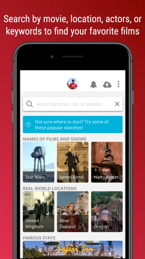 SCENE LOCATIONS: Database of film and television scene locations. Search our database by real location, movie location, film, franchise, any criteria, or use our suggestions. We have movie locations from the biggest studio franchises - like Lord of the Rings, Star Wars, Game of Thrones, and Mission:Impossible - to smaller independent films and classics. Easy to locate, challenging to locate, in the city, in the wilds, in your town or abroad, you can find it and navigate to it with SetJetters.