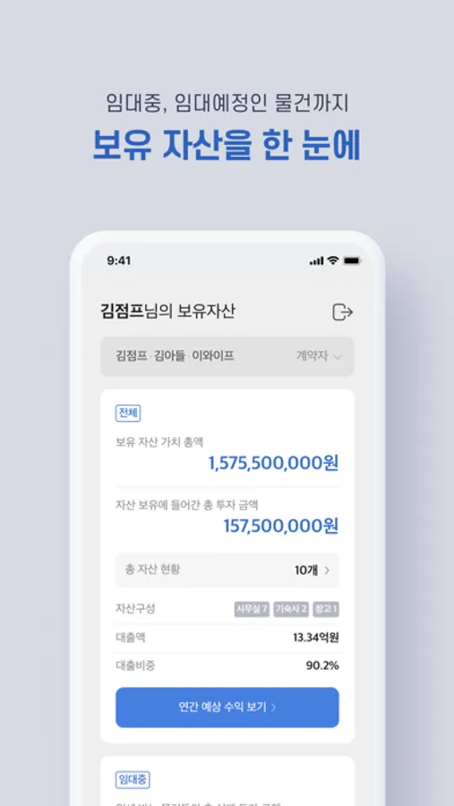 상업용 부동산 정보를 투명하게 만들어가고 있는 점프컴퍼니에서 상업용 부동산 자산 관리를 쉽고 편리하게 하실수 있도록 점프에셋 서비스를 제공합니다. 에셋을 통해 보유한 상업용 부동산 물건의 월세관리, 물건관리, 세금관리, 대출관리를 쉽게 진행하세요.