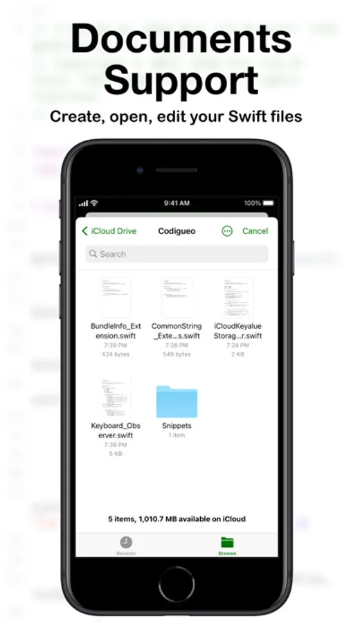With iCloud enabled your Swift files will also be stored locally in the Files App on your device.
