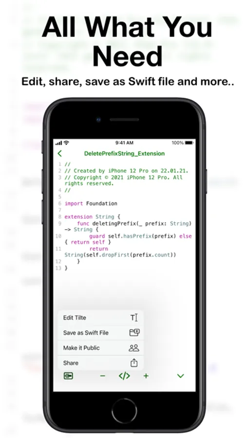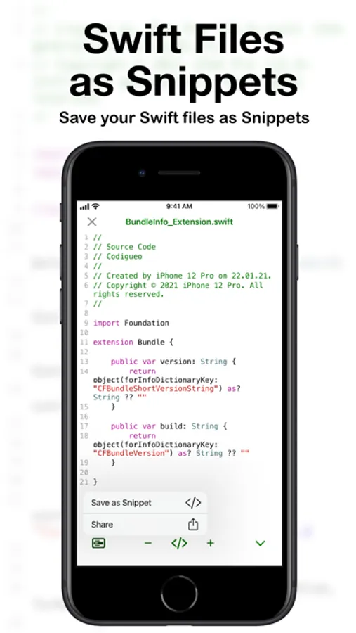 Codigueo will basically be your great library of all your precious swift code that you normally use and / or that you collect through the web. But that's not all, you can edit swift documents anywhere you are or create Swift files to add to your Xcode projects.