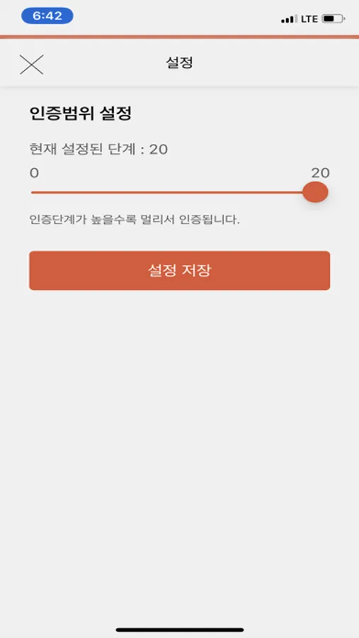 - 인증 범위 설정 메뉴에서 사용자 기종별로 알맞은 위치에서 문이 열리도록