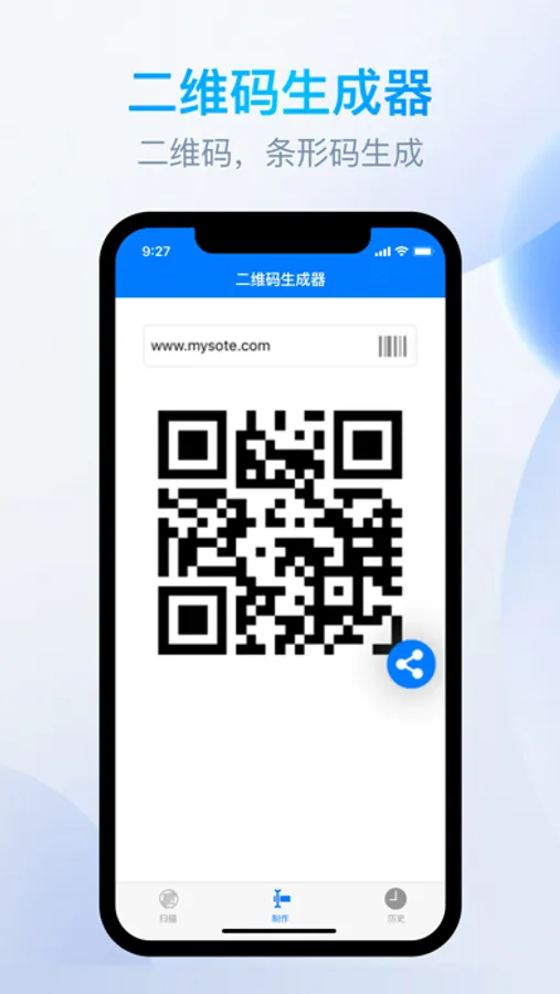 We have included scanner as well as custom QR code and Barcode generating option into it. It will store history of scanned data in its local database so that use can use it later. Also user can copy output result directly as well as visit through browser if scanned result is an URL. After generate a QR or Barcode, user can share or save the visual output as image.