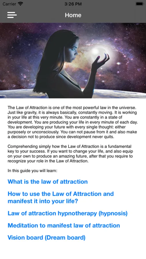 This guide will take you step by step, understanding the secret law of attraction and its manifestation magic. You will learn what is the law of attraction? How to use the laws of attraction to create manifestation magic in your life? Practical tools to bring the secret of attraction to your life: Vision board (dream board), Law of attraction meditation and law of attraction hypnosis.
