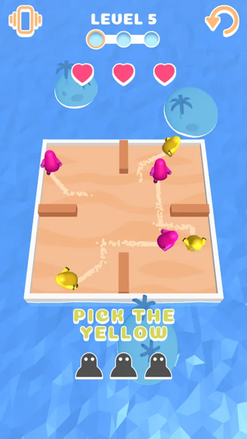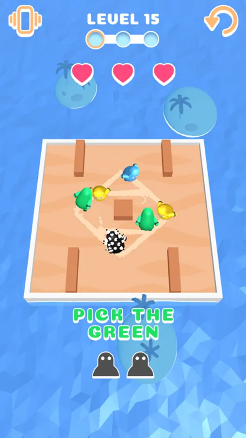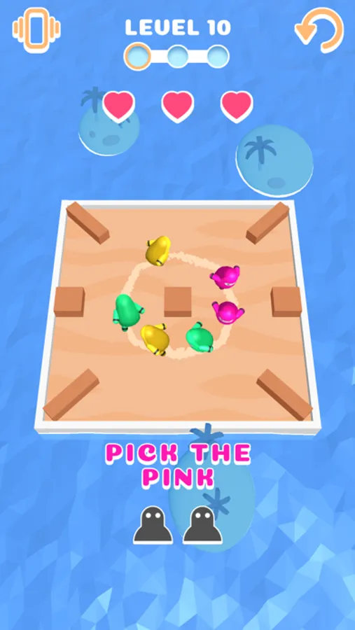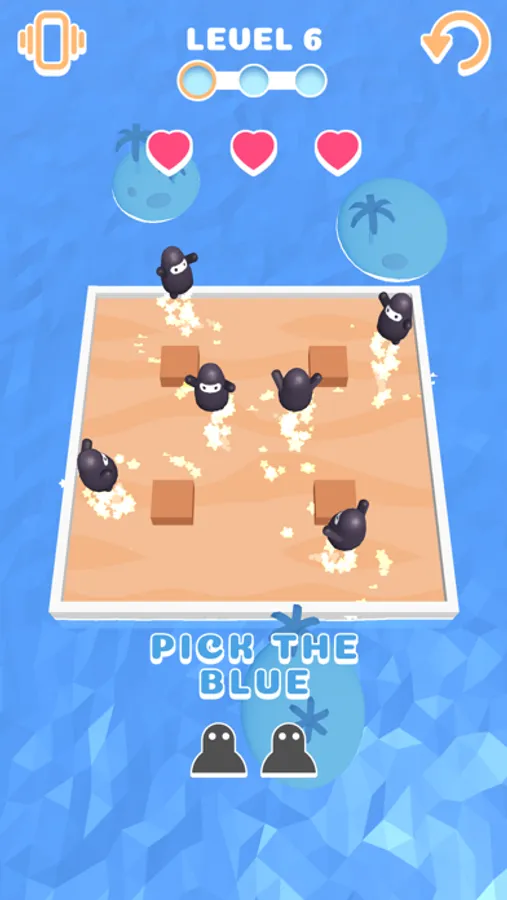 Dummies will run around and try to confise you with chaotic movements. Be attentive and track all dummies of the right color and then pick them.