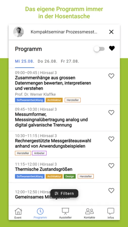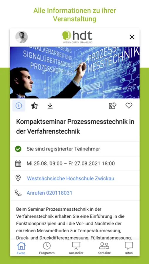 • Networking mit anderen Teilnehmern, Vortragenden und Ausstellern