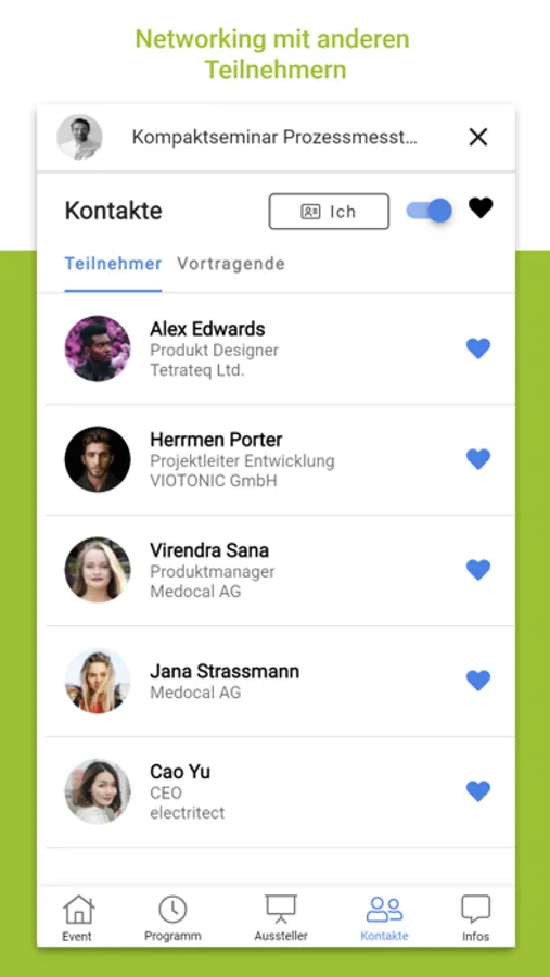 Informieren, planen und nehmen Sie aktiv an unseren Veranstaltungen teil, ganz gleich wo Sie sind. Unsere App bietet Ihnen hierfür ein vielseitiges Event-Tool: Sie können den Besuch von Veranstaltungen individuell planen, erhalten alle Informationen und Hintergrundmaterialien, können sich mit anderen Teilnehmern und den Vortragenden austauschen, an Abstimmungen teilnehmen und uns Feedback geben.