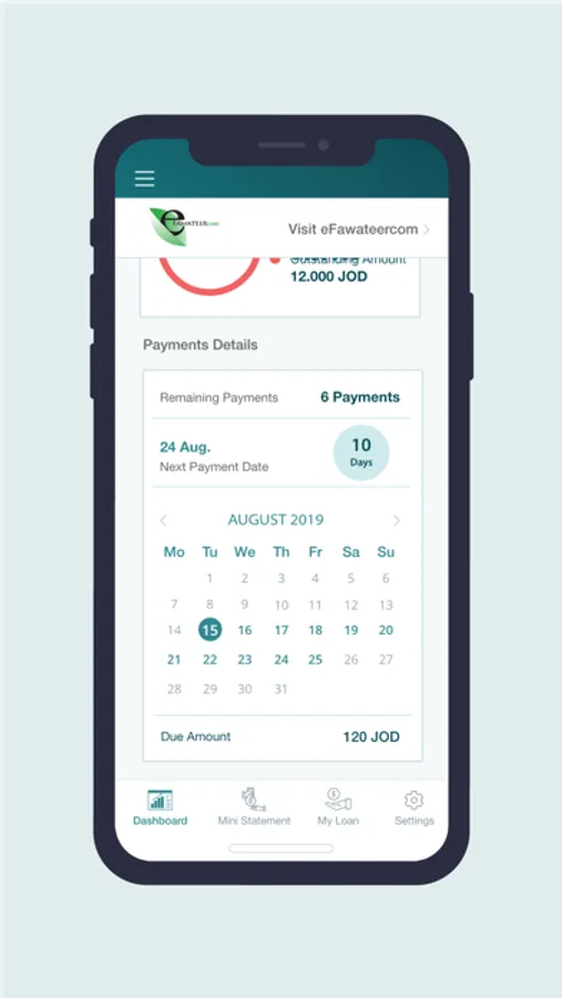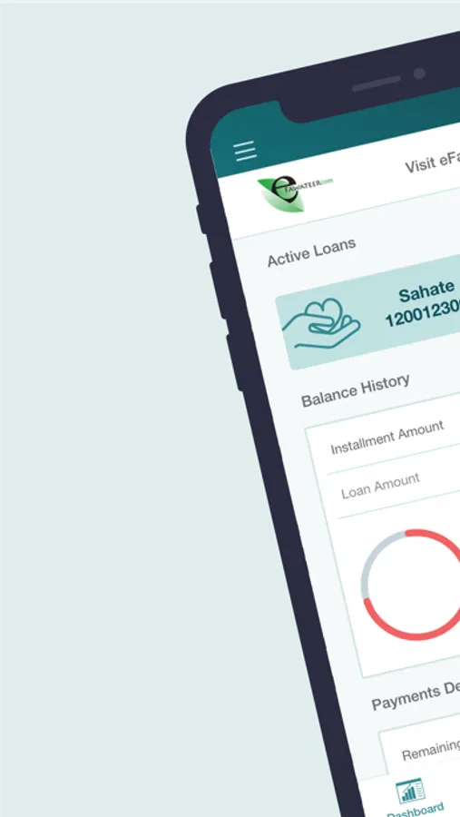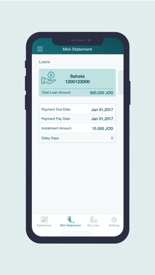 الاقئمة الرئيسية التي تظهر أخر الحركات ورصيد القرض.