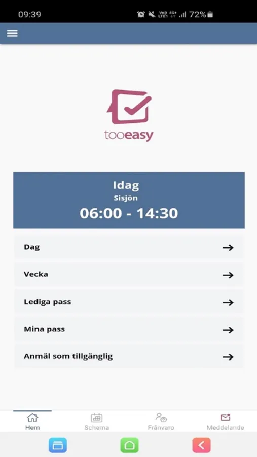 TooEasy mobilapp är kopplad till webbapplikationen TooEasy. Alla anställdas naturliga verktyg för att se, och hantera allt kring sitt schema och dialog med arbetsgivaren. Inloggningsuppgifter tillhandahålls av arbetsgivaren och är ett måste för att få tillgång till alla funktioner och information som finns i TooEasy mobilapp.