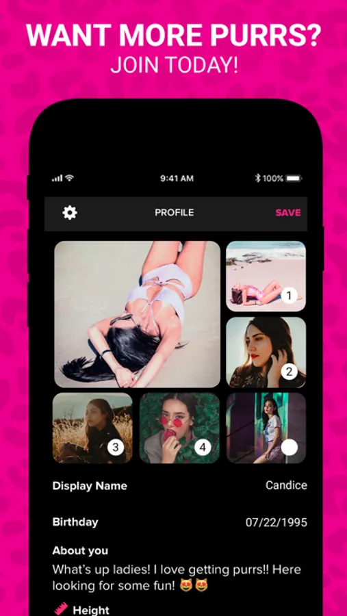 • Unlimited purrs (limited profiles can only send 3 purrs per 24 hours)