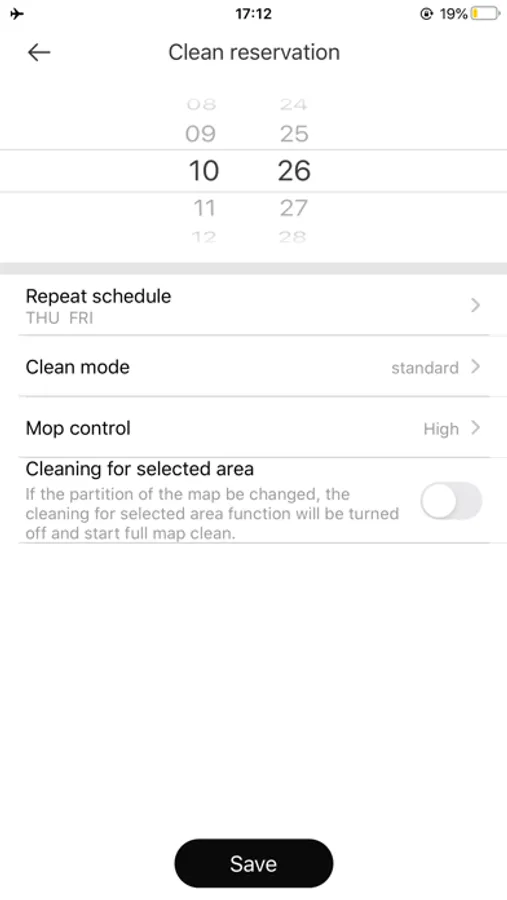 Equipment control, support direction control, cleaning preferences settings,etc.