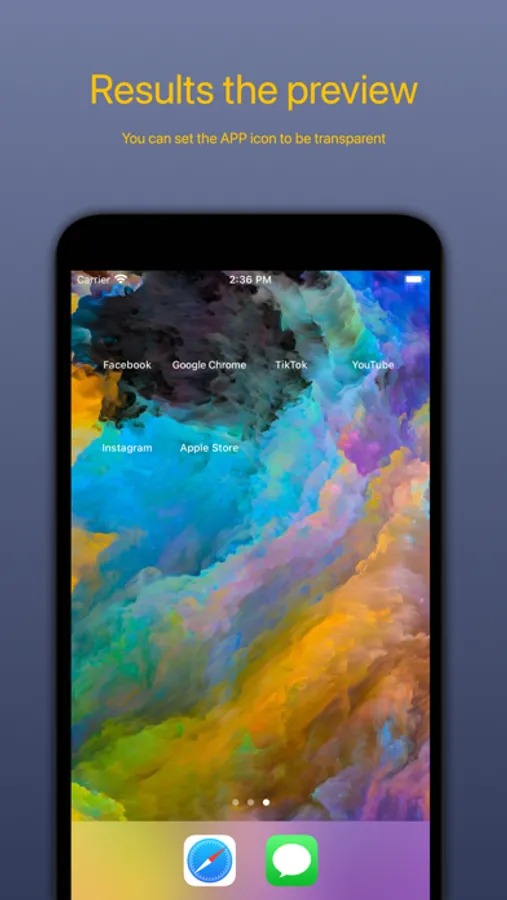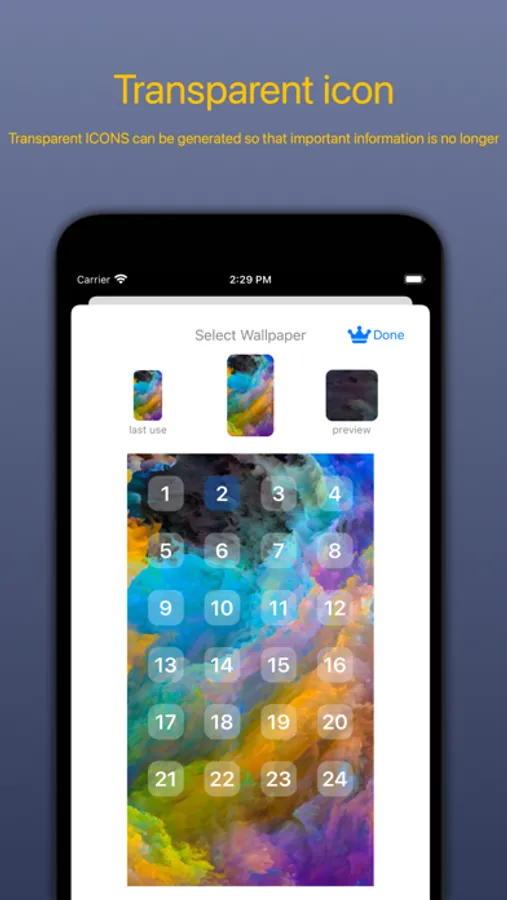 A tool to make ICONS transparent, just import wallpaper, you can generate transparent ICONS, replace the wallpaper no longer have to worry about the important screen is obscured.