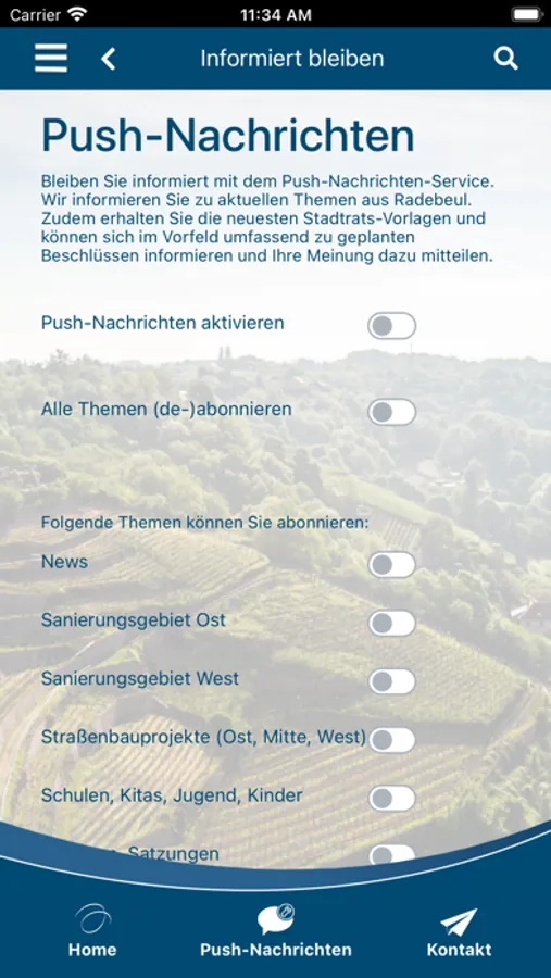 Mit der Radebeuler BürgerApp können sich alle Einwohnerinnen und Einwohner der Stadt Radebeul unkompliziert und leicht zugänglich über alle aktuellen Entscheidungsvorlagen der städtischen Gremien vorab informieren. Weiterhin erhalten Sie alle wichtigen Informationen in Echtzeit auf Ihrem Smartphone. Mit den aktuellen Themen und dem Online- Amtsblatt sind Sie immer auf dem neuesten Stand. Sie entscheiden, über welche Themen sie informiert werden möchten, setzen Sie einfach einen Filter.