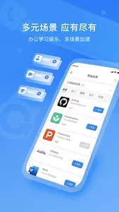 办公场景:为程序员、设计师、教师、产品经理、运营、销售、财务等专业技术人员或白领群体提供大量专业的加速场景(加速个性应用或站点),实现高效访问,下载无压力;