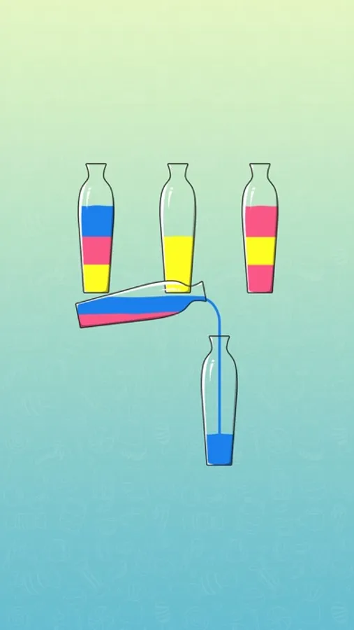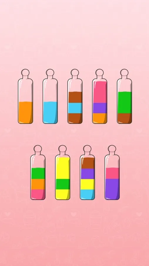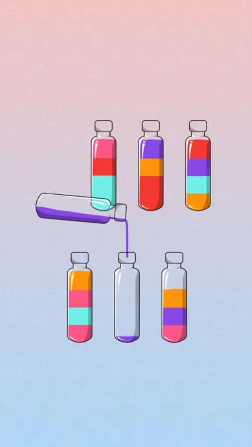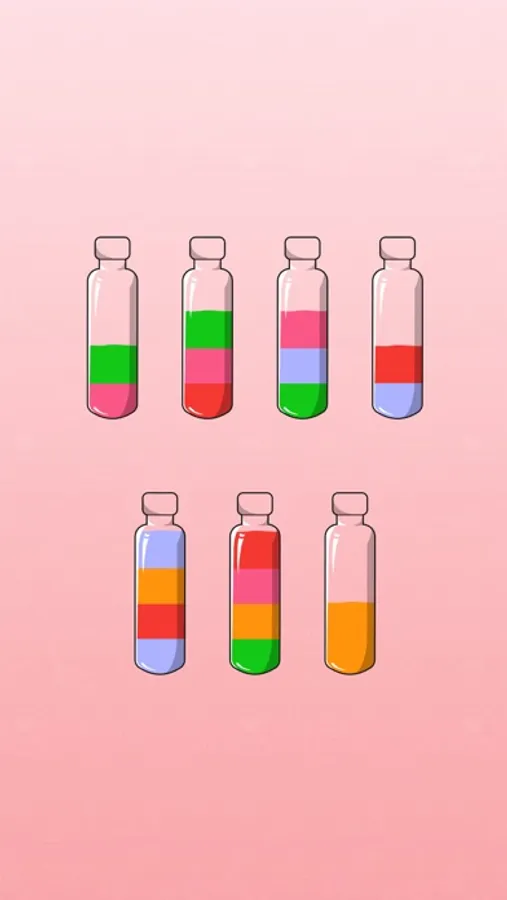 Try to sort the colored water in the bottles until all colors are in the same bottle.