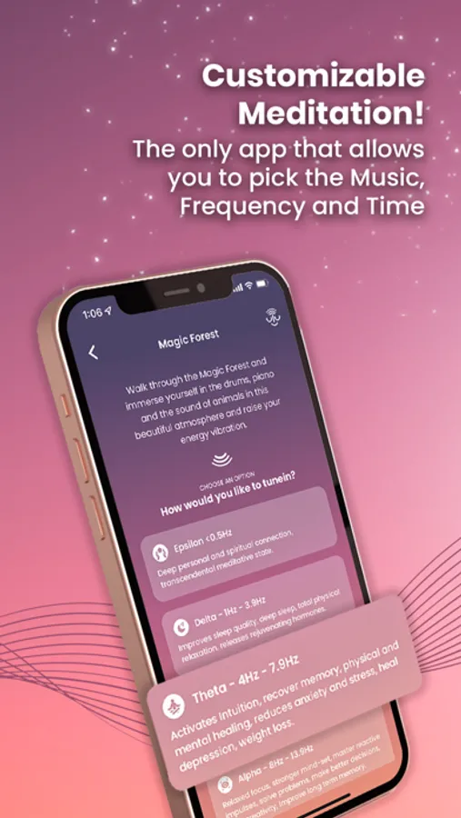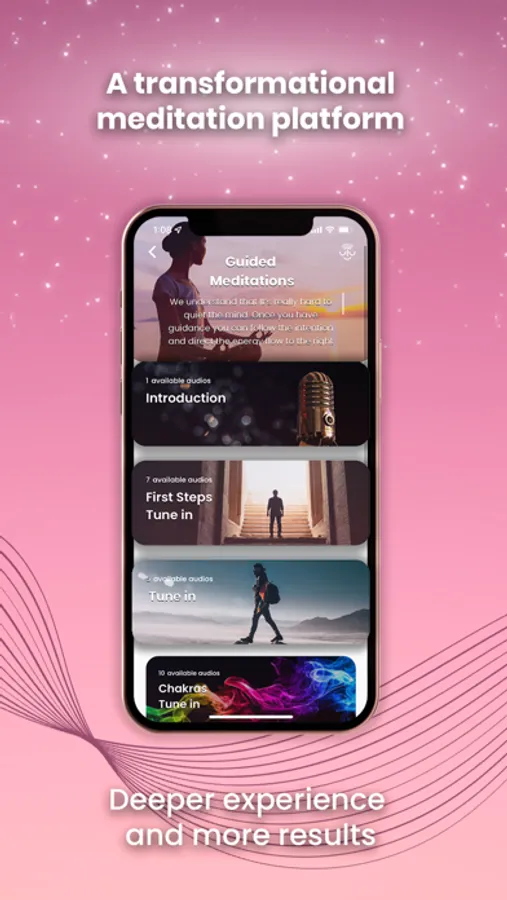 Our mission is to contribute to evolution by elevating the vibration of the world by providing to society a daily tool that will improve a better life, facilitating the practice of meditation in a much more effective and enjoyable way. We developed a unique sound formula with pure 8D transporting reality, Binaural Beats produced and equalized in professional studios. Exclusive content that strengthens mental fitness, improves self-care, self-love and immunity. The more tuned-in people are, the better the world.