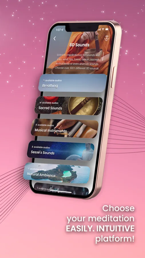 1.000 + tracks. High-quality Meditation Music combined with Binaural Beats and 8D sound technology.