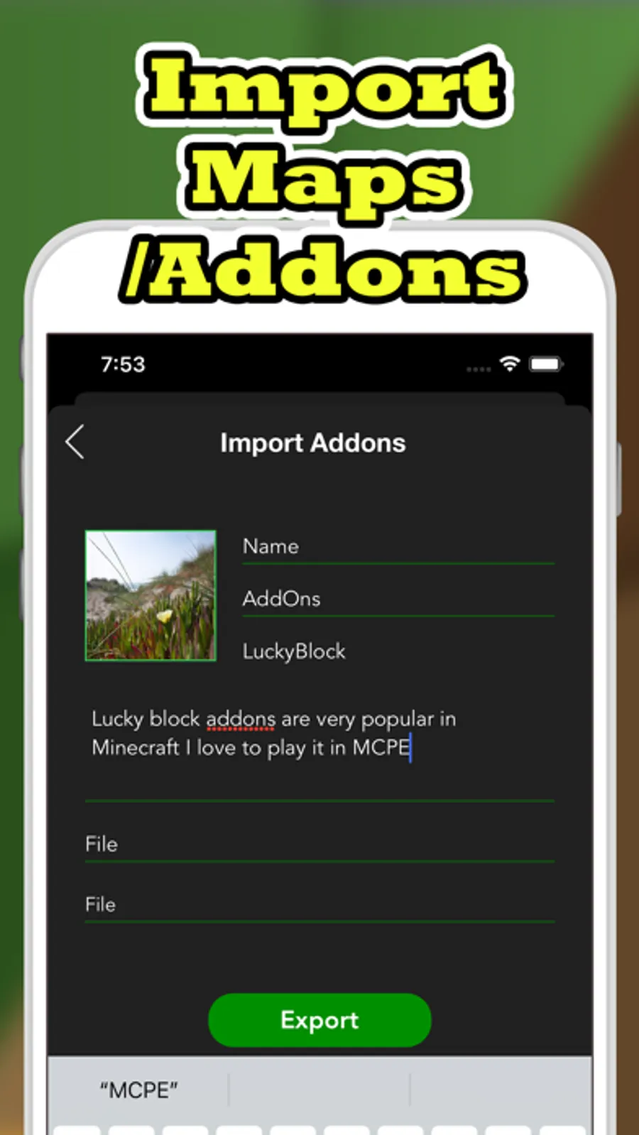 • Easy save and export addon to Minecraft game.