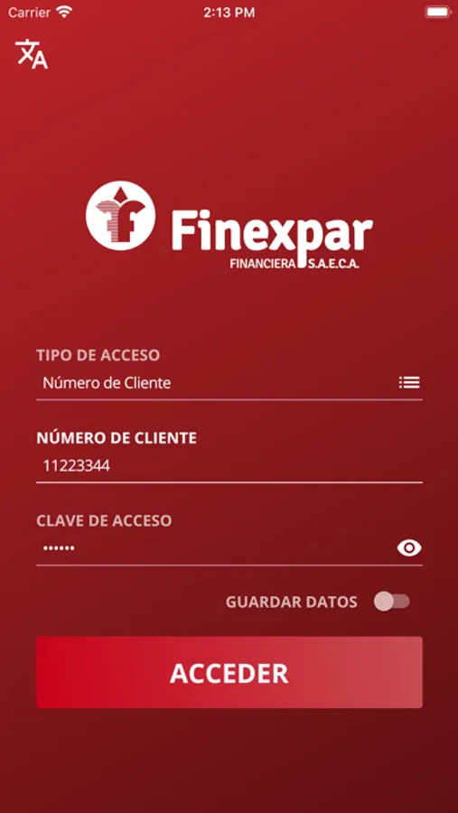 Podes ingresar utilizando tus mismas credenciales que Finexpar Online 24 hs.