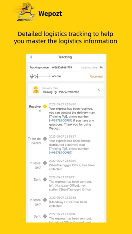 Wepozt deliver was established in early 2020. Wepozt Delivery Head Office is located in Tamwe Township, Yangon.We are a door to door delivery service in Myanmar. Based on more than 10 years of trade and service , good and systematic transportation international standard technology, Services will be provided throughout Myanmar with experienced staffs. We now have 26 branches in Myanmar and provide door to door service to 210 cities. Our company has created over 100 job opportunities in Myanmar. As a foreign-based company, Wepozt is striving to become a more complete business with the help of digital technology.