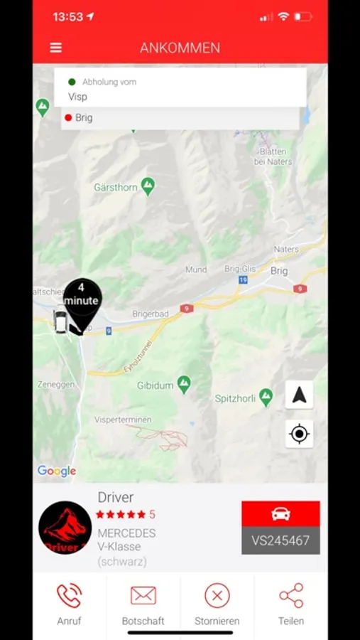 - Chatten Sie mit dem Fahrer oder rufen Sie ihm an.