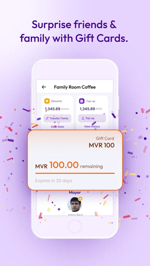 • Gift Cards: Users can get or give gift cards with a special message or terms of use from their favorite stores.