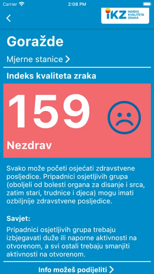 Ovisno od stepena zagađenosti zraka, u aplikaciji su dostupne i kratke informacije o mogućem uticaju na zdravlje ljudi, te savjeti kako se ponašati kada je zrak zagađen.