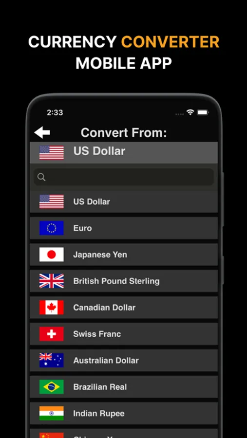 • Quick search function to find the exact currency you’re looking for
