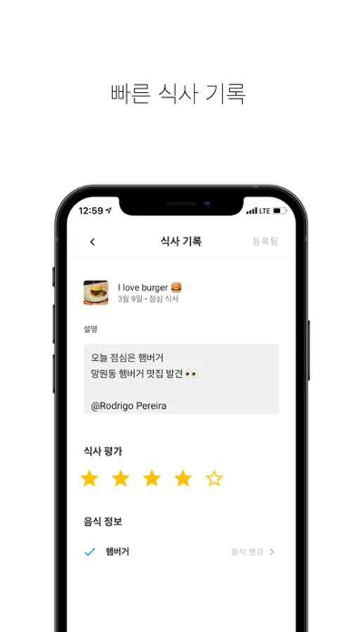 ・ 식사 사진에 음식을 태그해서 음식 정보를 등록 할 수 있습니다.