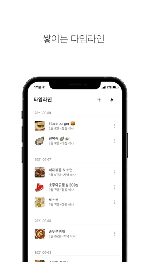 ・ 쌓여 가는 기록을 통해 나만의 식사 스토리를 만들어 보세요.
