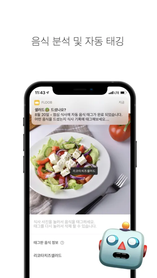 ・ 자동 음식 태그를 사용해서 음식 정보 분석 및 자동 관리 서비스를 받을 수 있습니다.