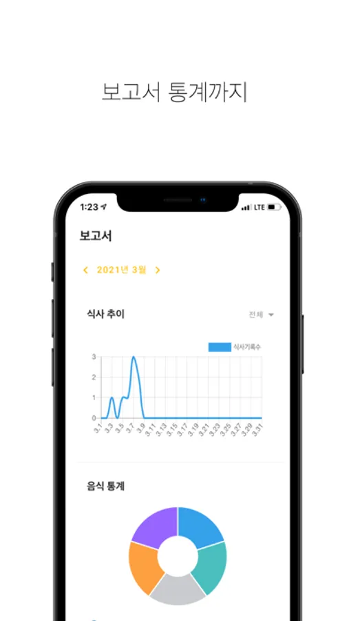 ・ 내 식사 기록에 대한 통계 정보를 확인할 수 있습니다.