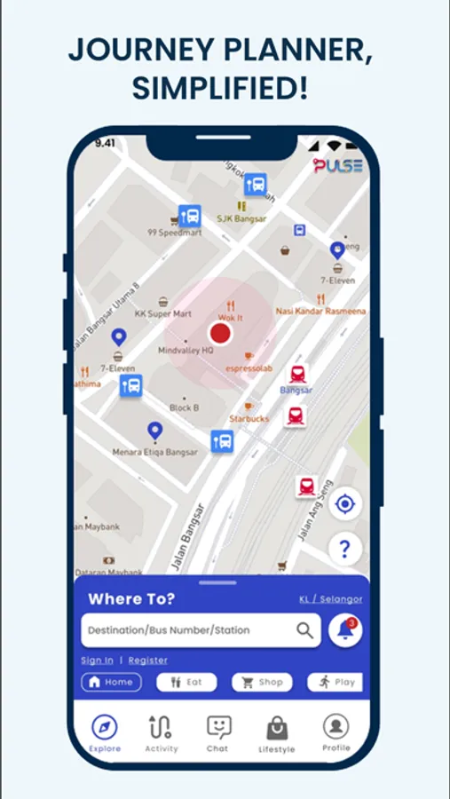 MyRapid PULSE for Rapid KL, Rapid Penang, and Rapid Kuantan public transport users. Features include Journey Planner, Arrival Time of train and bus, Fare Calculator, Service Status of trains, Stations and Points of Interest, app push notifications, and Contact Us. Traveling is now more convenient with MyRapid PULSE.