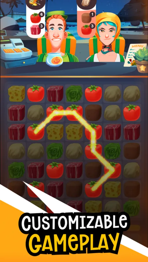 Dive into a culinary adventure with Food Frenzy: Puzzle! This isn't just another match-3 game; it's a food game that spices up the genre and serves a delicious experience.
