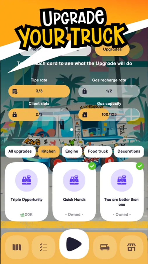 Got a knack for speed and precision? Great, because that's what it takes to satisfy your customers and grow your food truck empire! Customize your menu, upgrade your truck, and unlock powerful abilities that turbocharge your gameplay.