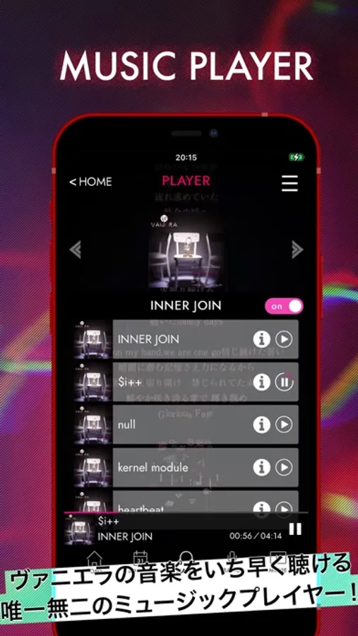 その名の通り「VANIERA専用」のアプリとなっておりますので、このアプリがあればVANIERAの全ての楽曲から動画まで、アプリ内でしか見聞きできないコンテンツが盛り沢山!!かつ、それらがすべてチェックできてしまう欲張りなサービスとなっております!!
