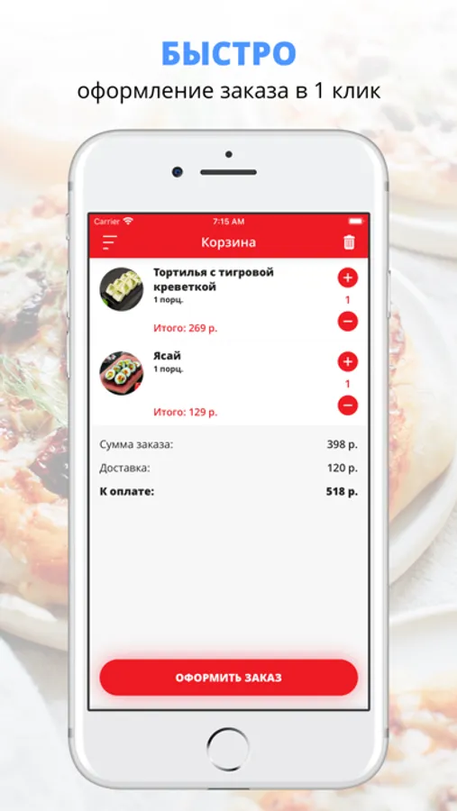 Скачивайте наше приложение, оформляйте заказ и наслаждайтесь любимой едой, где бы Вы ни были! Приятного аппетита!