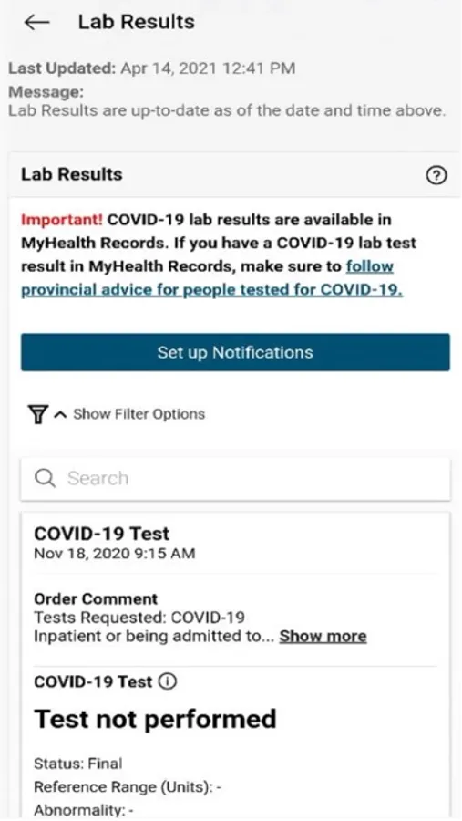 - access your lab test results, as soon as they’re ready