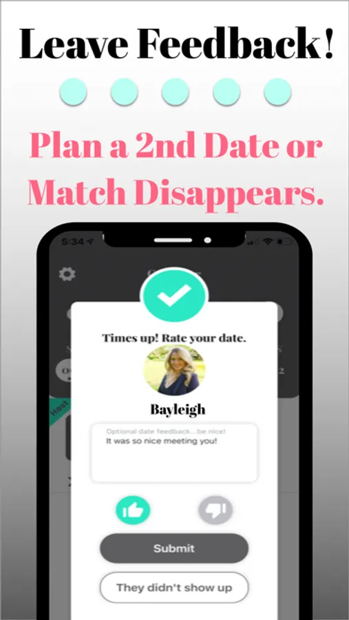 - rate your date with a thumbs up if you’d like to see them again, thumbs down for the match to disappear