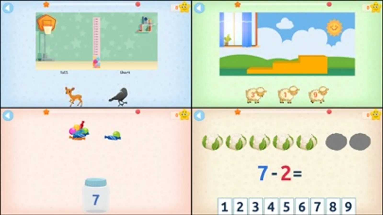 Preschool Math app is based on tried and tested teaching with kindergarten children. This educational game will help build the basic math skills for toddlers, which is a foundation for school math curriculum. And the best part is that its fun to learn - because of the cute animals, beautiful animation, cartoon sounds, positive encouragement. The young child will learn to count numbers, add numbers, subtract numbers, and many more basic math skills.