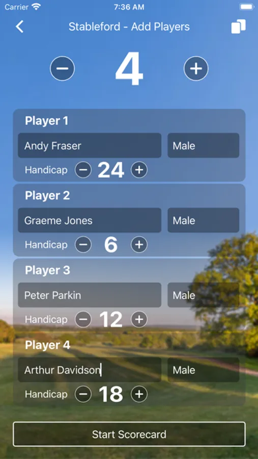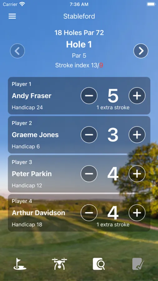 • In app Scorecards (up to 4 players!) to calculate Stroke, Stableford and Match Play