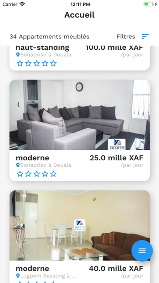Application pour retrouver les biens immobiliers dans la ville de Douala tels que des appartements, des bureaux, des magasins et bien d'autres.