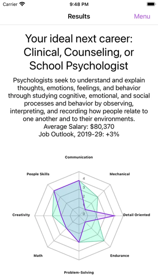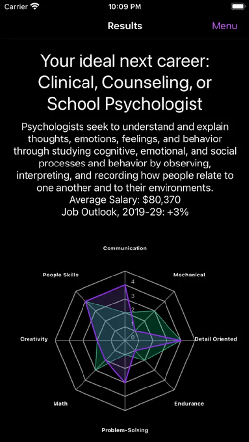 My Future Career uses data from the United States Bureau of Labor Statistics (BLS) to recommend jobs that will have the most openings over the coming decade. If you’re looking for a stable future career, this is the app for you!
