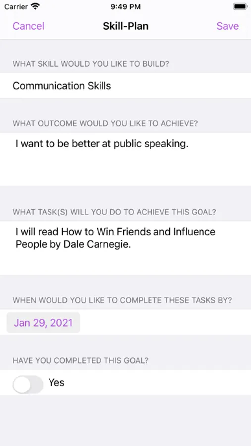 My Future Career helps you identify and grow towards your ideal next job. First, you can take the test to see what job might be the best fit for you. My Future Career will then compare your ability in a variety of skills to the level future employers will likely want from you and recommend areas for you to grow. Once you’ve identified a skill you’d like to grow in you can set up a Skill Plan where you can set specific goals you’d like to accomplish such that you grow in that skill.