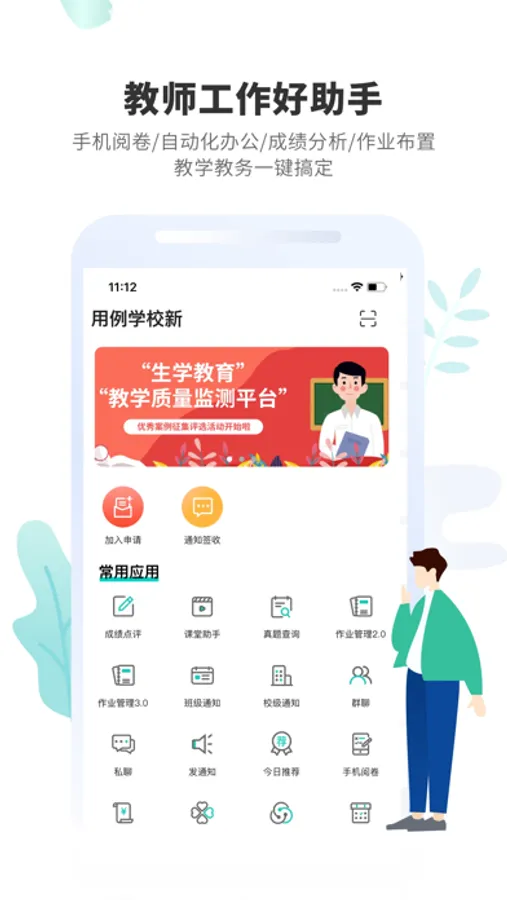 家校共育教师端是专为教师打造的一款教学应用,它不仅可快速在线布置作业,还可第一时间查询班级学生统考成绩,并精确分析到班级及学生小题得分、薄弱知识点掌握情况等维度。