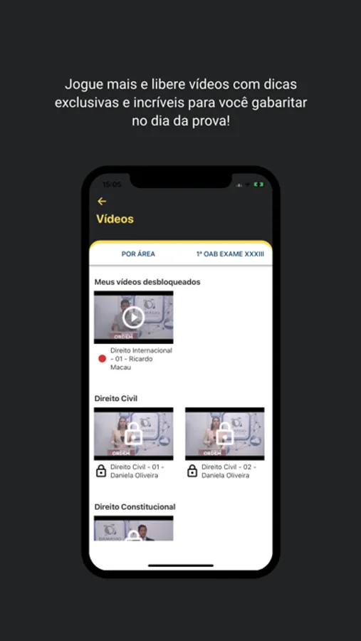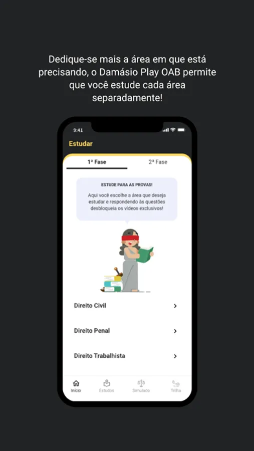 No Aplicativo Damásio Play OAB você terá questões atualizadas, preparadas pela renomada equipe da Damásio, para estudar a qualquer momento pelo seu smartphone escolhendo a disciplina de forma intuitiva no Modo Estudo.