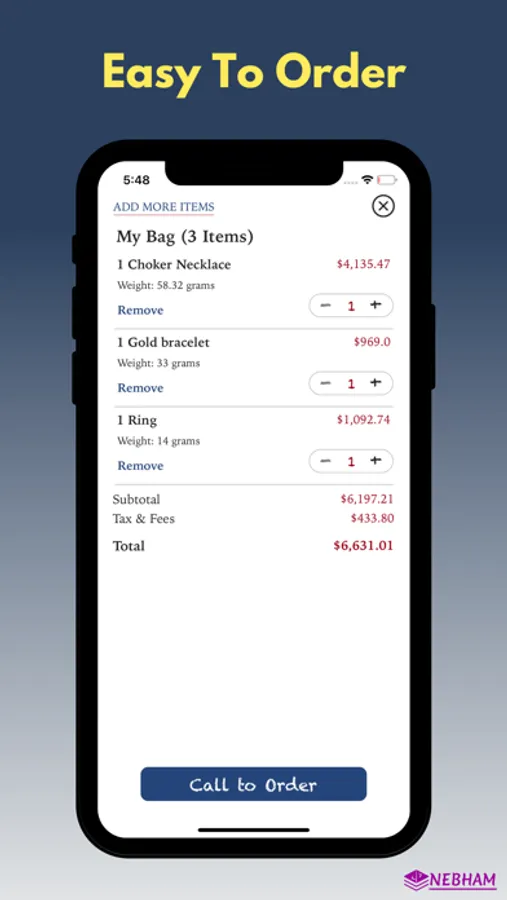 - Add to bag: Add your favorite jewelry to the bag and give us a call to place an order