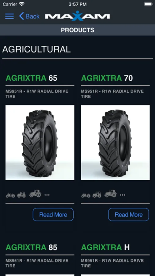 This app provides a complete set of information about Maxam Tire products, their technical characteristics, features, applications.