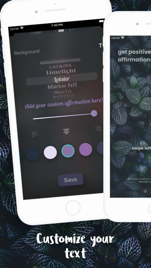 We know that personalization is important. With over 45+ fonts and 60+ colors to choose from, Zalea was designed with customization in mind. We have several beautiful calming backgrounds to choose from, if you want to change it up, upload your own image!